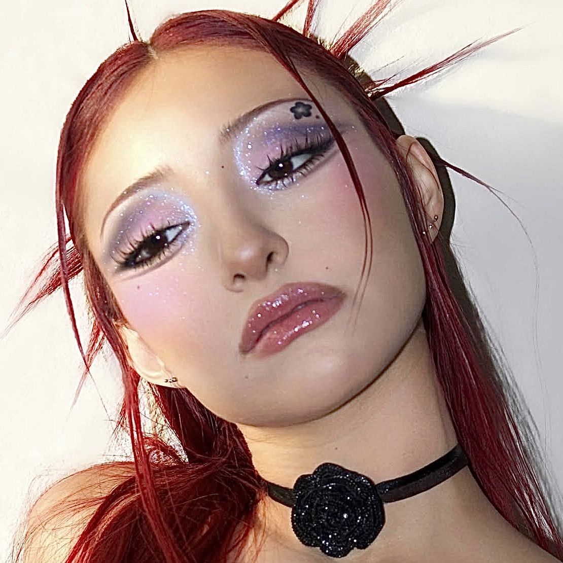 Look je velmi 2000s coded, tenké definované obočí, matné kouřovky, extra černá linka a super lesklý lesk, na který se ti budou lepit vlasy. Ty jsou rovné jako hřebíky a někdy mají přední ofinu staženou dozadu, což tvoří lehký objem.