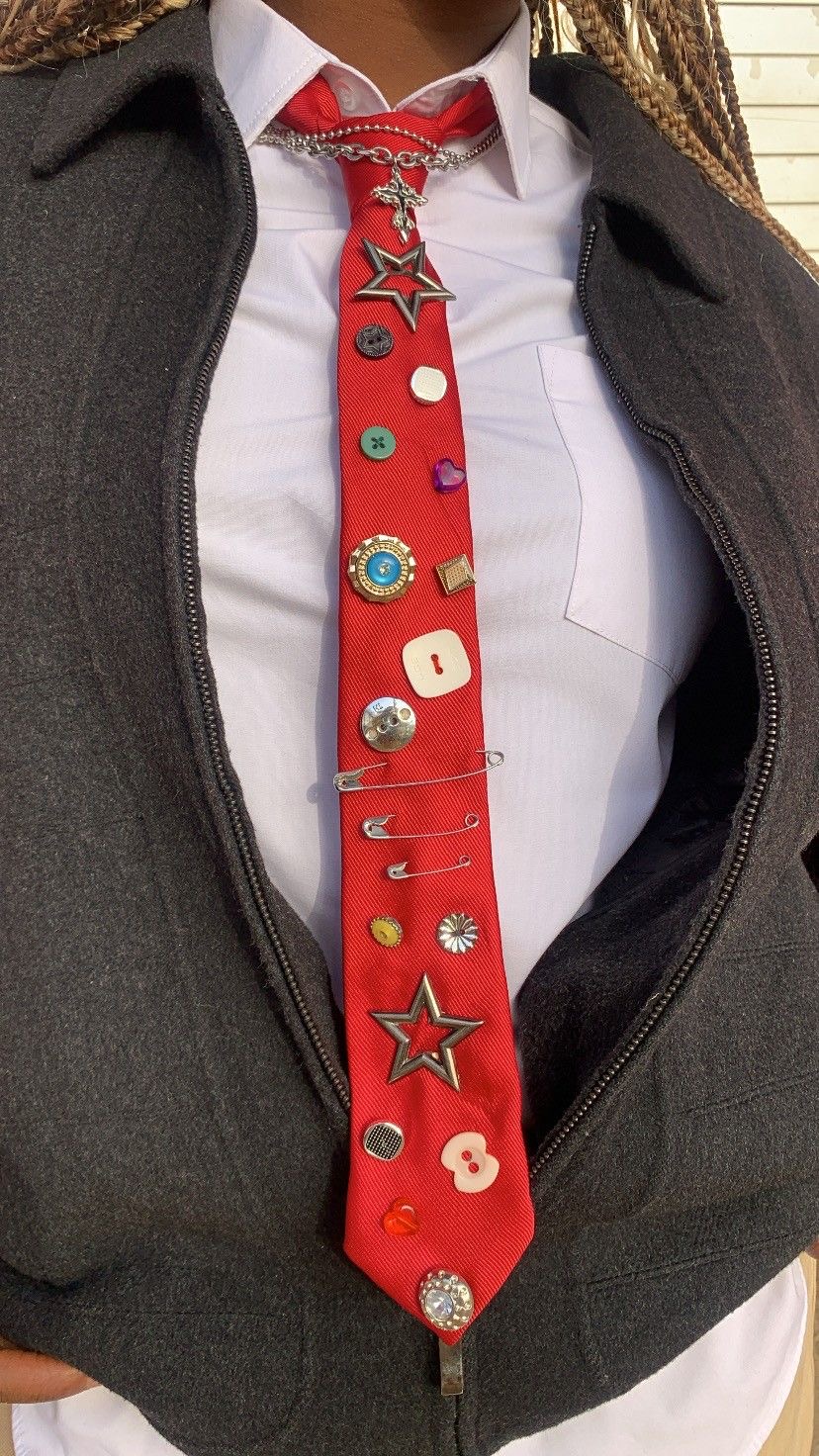 Another fun way je za mě vytáhnout ze skříně delší kravatu, nosit ji přes košili, halenku a konec si zastrčit do kalhot, nebo sukně.